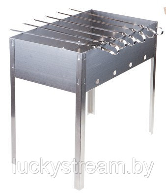 Легко собирается, разбирается, удобен при транспортировке. Долговечен, занимает мало места и отлично справляется со своими функцияими. Основное отличие от стационарного мангала - удобство переноса, быстрый цикл сборки-разборки, компактность. Шампуры изготовлены из нержавеющей стали и имеют длину 45 см.