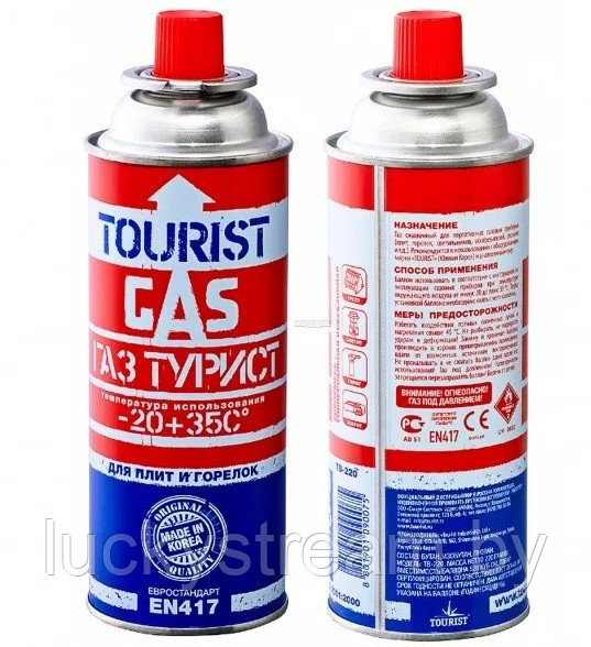 Газ сжиженный для портативных газовых приборов (плит, горелок, светильников, обогревателей, резаков и т.д.). Рекомендуется к использованию с оборудованием марки "TOURIST" (Южная Корея) и аналогичных ему.