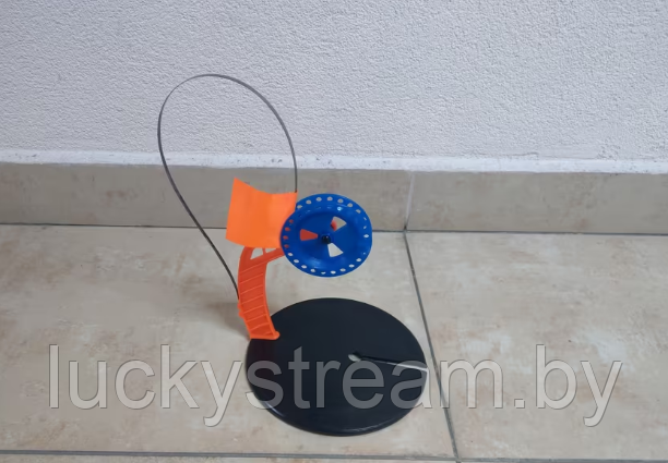 Жерлица с угловой стойкой, на горизонтальной платформе. На платформе крепятся катушка и пружина с флажком.