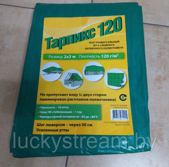 Размеры тента указаны по размеру исходного материала без учета подгибов. Фактические размеры тента могут отличаться от указанных на упаковке (до 2%).